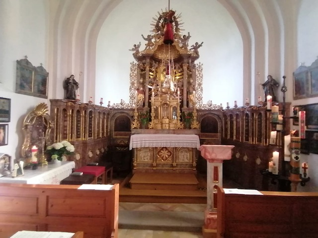 Einen schönen Wortgottesdienst durften die Teilnehmer der Fußwallfahrt der Krieger- und Soldatenkameradschaft Anger und Aufham in Vachenlueg feiern: Diakon Peter Walter sprach in seiner Predigt über „Josef, den Arbeiter“. Die Bergschützenkapelle verlieh dem Gottesdienst mit ihrer Musik einen würdigen Rahmen.