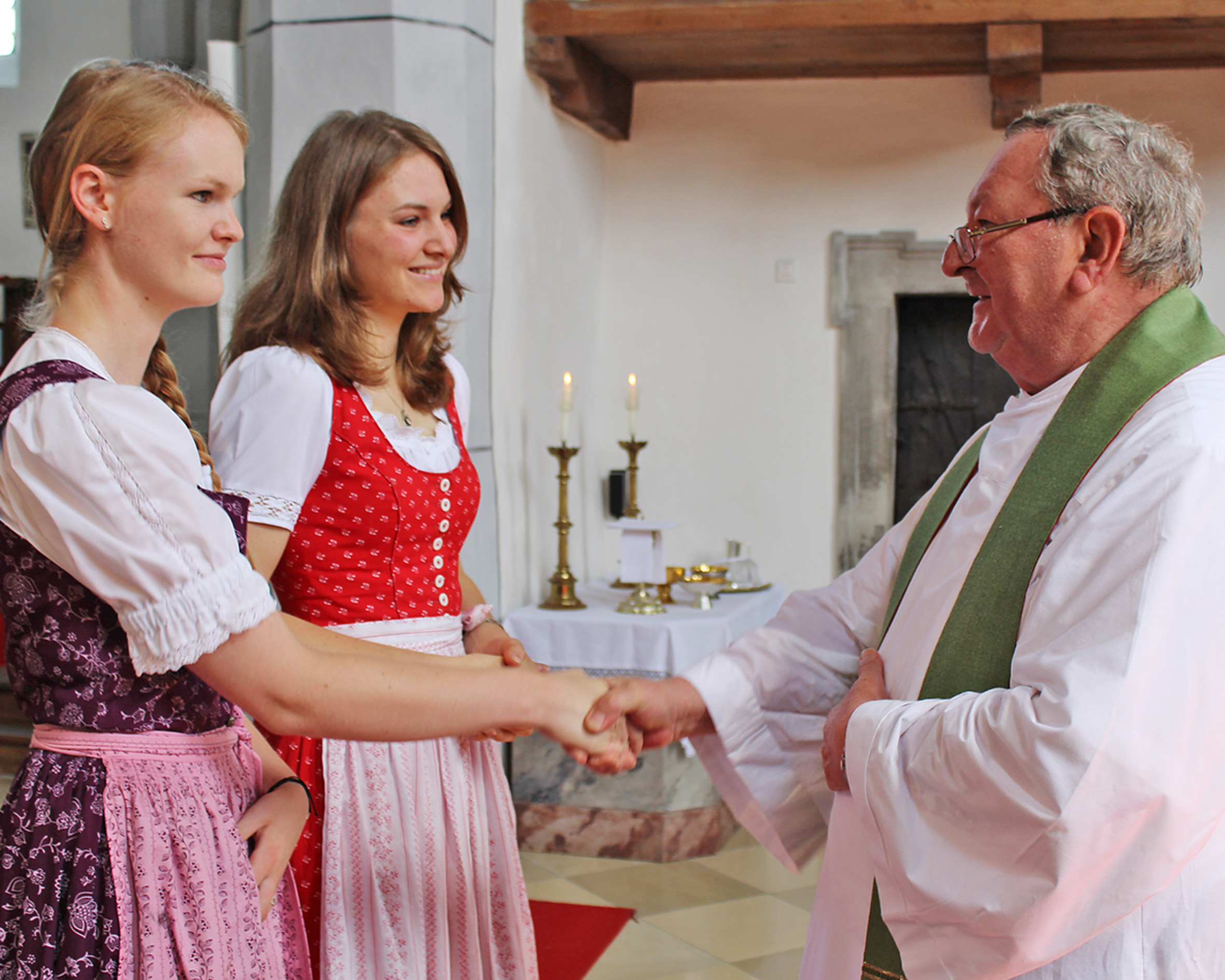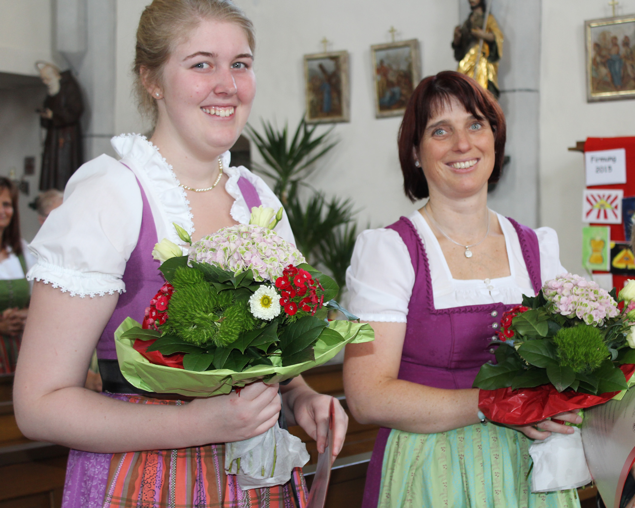 Die zwei scheidenden Lektorinnen, zugleich Sängerinnen im Jugendchor und aktive KLJBlerinnen, trugen in der Messe die Lesung aus dem Buch Jeremia und die Fürbitten vor. Beide übten ihren Dienst zuverlässig und freudig aus, wie Koller lobend erwähnte, Monika Berger acht Jahre und Bettina Streibl sechs Jahre lang. Sie seien jederzeit auch zum Einspringen bereit gewesen. Monika Berger heiratet heuer und zieht daher in die Gemeinde Teisendorf. Bettina Streibl beginnt in Regensburg ein Sozialpädagogik-Studium.