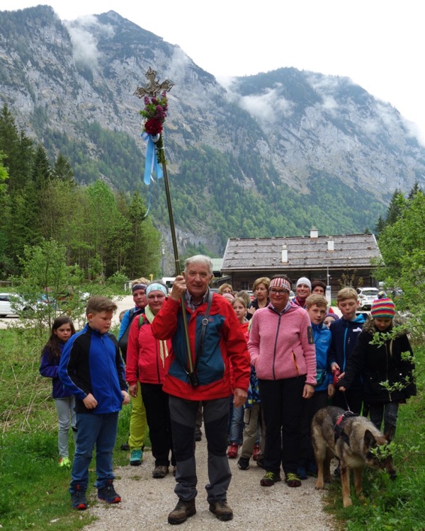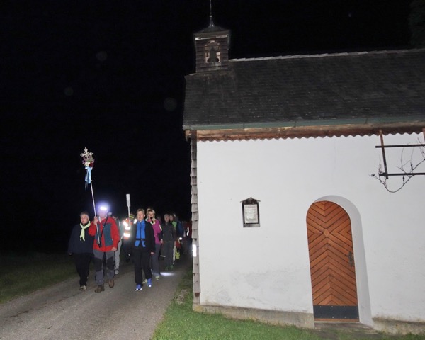 Mit Sepp Koch als Kreuzträger an der Spitze brach die Gruppe, in der alle Generationen vertreten waren, am Wachterl zur Schlussetappe auf.
