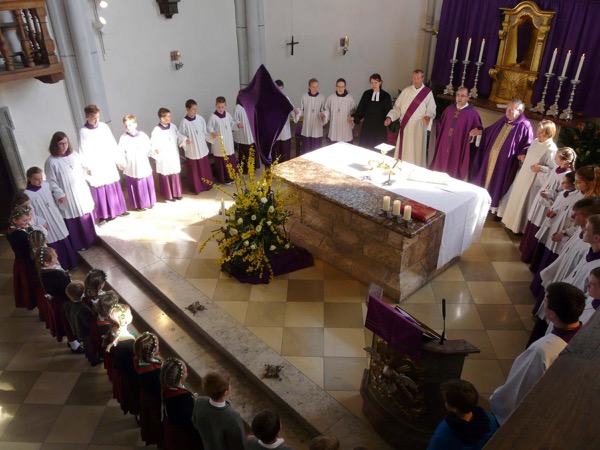 Pfarrer Ionel Anghel ist seit dem 01. März der neue Leiter des Pfarrverbandes Anger-Aufham-Piding. In jeder Pfarrei wurde er von den Gläubigen persönlich begrüßt. Nach einem Gottesdienst in Aufham und der offiziellen Amtseinführung in Piding (wir berichteten) folgte nun am Sonntag der Begrüßungsgottesdienst in Anger. Ein prachtvoller sonniger Frühlingstag bildete den äußeren Rahmen für ein besonderes Fest. In einen farbenfrohen Kirchenzug marschierte die Christengemeinde zur Pfarrkirche und der neue Seelsorger wertete in seiner Predigt den Symbolcharakter des Zuges. „Es ist nicht nur die Freude über einen neuen Pfarrer die zum Ausdruck kommt. Er bildet auch ein Sinnbild der Gemeinschaft und Zusammenhalt, mit dem Hintergrund dass wir alle zum gleichen Ziel unterwegs sind.“