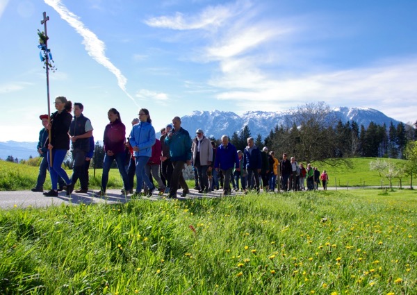Am Morgen des 1. Mai trafen sich etwa 80 Gläubige aus dem Pfarrverband Anger-Aufham-Piding zum traditionellen Bittgang auf den Johannishögl. Begrüßt wurden sie zunächst von Alois Aigner und Norbert Titze, der mit einleitenden Gedanken auf das Thema „Bitten“ hinführte. Dann setzte sich die Prozession in Bewegung, angeführt von den Ministranten mit einem blumengeschmückten Kreuz und den beiden Vorbetern Norbert Titze und Alois Aigner. Auf dem Weg zum Johannishögl wurde der Rosenkranz gebetet mit jeweils einleitenden Gedanken zu den einzelnen Geheimnissen. Zwei Stationen hatten meditative Gedanken über „Luft“ und „Wasser“ zum Thema. Am Gotteshaus angekommen, wurden die Pilger von Pfarrer Josef Koller gesegnet. Die Wallfahrt endete mit einem festlichen Gottesdienst.