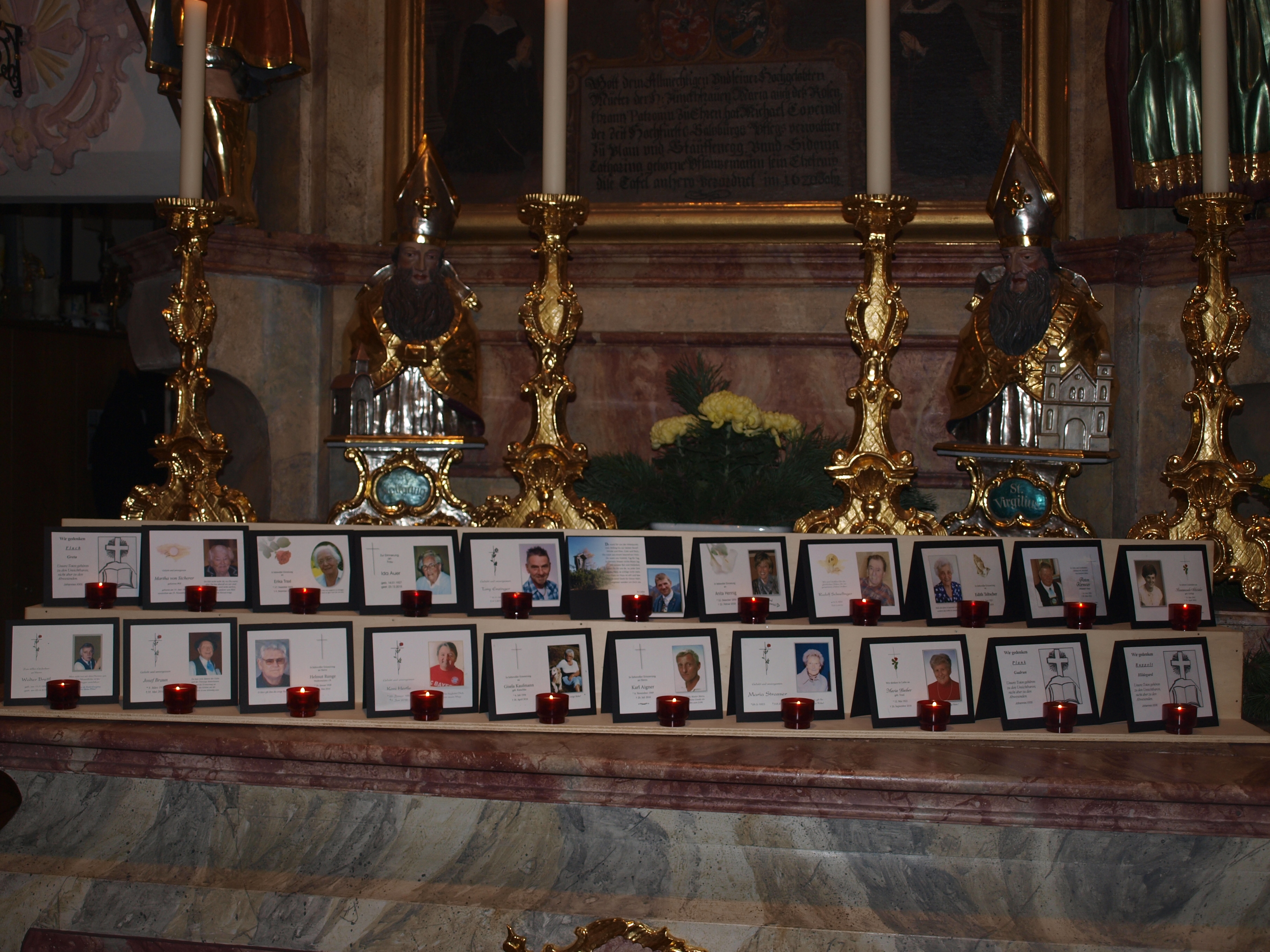 Mit einem festlichen Abendgottesdienst in der Pfarrkirche Maria Geburt, Piding, gedachte der Pfarrverband der Pfarreien Anger Aufham Piding der im vergangenen Jahr Verstorbenen. Musikalisch umrahmt wurde die Hl. Messe vom Kirchenchor Piding unter der Leitung von Anni Utz. Den Gottesdienst zelebrierte Kaplan Korbinian Wirzberger, Teisendorf. Er ging in seiner Predigt auf das Christuswort ein „Ich bin der Weg, die Wahrheit und das Leben“. Er bereitet uns und unseren Verstorbenen eine Wohnung im Himmel. Das bedeutet, eine Heimat zu haben.