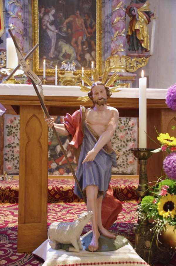 Pfarrer Ionel Anghel zelebrierte den Patroziniumsgottesdienst. Er freute sich in seiner Begrüßung, dass auch die weiteren Mitarbeiter des Seelsorgedienstes im Pfarrverband, Pfarrer Josef Koller, Gemeindereferentin Marianne Aicher und natürlich der scheidende Diakon Horst Seipel mitfeierten. Zu Beginn des Gottesdienstes segnete Pfarrer Anghel eine Statute mit der Darstellung Johannes des Täufers und eine Kirchenfahne mit einem Abbild des Heiligen. Beide Gegenstände waren restauriert worden und erstrahlen nun in neuem Glanz. Die Lesungen des Gottesdienstes befassten sich mit dem bekannten Heiligen „Johannes dem Täufer“, der als der Vorläufer Jesu gilt. Diakon Horst Seipel hielt die Predigt und wies dabei auf die Besonderheit des Johannes hin. „ Er ist der einzige Heilige neben der Gottesmutter, dessen Geburtstag die Kirche feiert. An ihm ist alles geradlinig. Er fordert uns heraus, die Blickrichtung zu ändern“, sagte Seipel. Damit sei die Blickrichtung nach innen im Hinblick auf die Gegenwart Gottes gemeint, erläuterte Seipel näher. Weiter erklärte der Prediger, die Darstellung des Heiligen mit einem Lamm an seiner Seite. Dies sei der Hinweis auf Jesus Christus, das Lamm Gottes der sich für die Menschen geopfert hat. Mit klangvollen Kirchenliedern und Instrumentalstücken wurde der Patroziniumsgottesdienst festlich musikalisch gestaltet. Am Ende der Messe übermittelte Pfarrer Ionel Anghel herzliche Dankesworte an den scheidenden Diakon Horst Seipel. Er erläuterte kurz die Aufgaben eines Diakons, zu denen auch die Spende des Taufsakraments gehört. „Gerade in letzter Zeit hat Herr Seipel viele Taufen im Pfarrverband gespendet“, zog Pfarrer Anghel eine Parallele zu Johannes dem Täufer. Eine zweifarbige Stola war das Abschiedsgeschenk der Pfarrei Piding, das Pfarrgemeinderatsvorsitzender Alois Aigner übergab. Pfarrer Josef Koller sorgte dann abschließend für einen heiter-herzlichen Akzent. „Die rumänische Form von ‚Johannes‘ ist Ionel“, ließ er die Gläubigen in der voll besetzten Kirche wissen. Deshalb könne auch der Pfarrverbandsleiter Pfarrer Ionel Anghel an diesem Tag seinen Namenstag feiern. Ihm und allen Anwesenden mit Namen „Johannes“ wurde dann ein spontanes Ständchen gebracht. „Viel Glück und viel Segen“ stimmten die Kirchenbesucher im Kanon an, bevor die Kirchenbläser den musikalischen Abschluss bildeten.