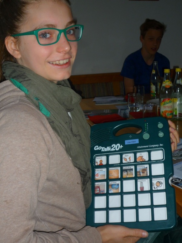 Um die Kommunikation für Menschen mit Behinderung zu intensivieren gibt es sog. „GoTalk pads“.