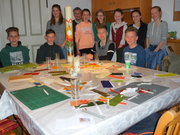 Eindrücke vom Firmpraktikum mit Frau Petra Steinbacher „Osterkerze gestalten“