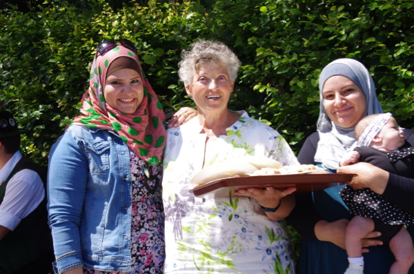 Auch die in Piding lebenden Asylbewerber beteiligten sich am Pfarrfest. Am Vortag hatten einige Frauen süße und pikante syrische Köstlichkeiten zubereitet, die gegen eine Spende verkauft wurden. Das Geld wird für die Ferienbetreuung der Kinder verwendet. Während der Ferien erhalten die Kinder weiterhin Unterricht, um im neuen Schuljahr gut mitzukommen, aber nun können sie auch einmal Eisessen gehen, ins Schwimmbad fahren oder ein Museum besuchen. Die Pfarrfestbesucher probierten gerne die fremdartigen Häppchen und zeigten sich spendabel, so dass eine schöne Summe zusammenkam, mit der den Kindern der Asylbewerber einige Ferienunternehmungen ermöglicht werden können.