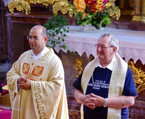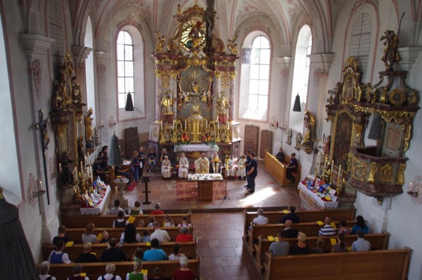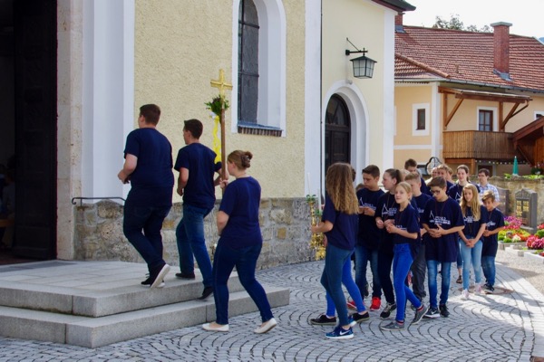 Am 23.7.2017 wurde in der Pfarrkirche Piding der festliche Kirchweihgottesdienst gefeiert. Zu den feierlichen Klängen von Kirchenchor und Kirchenbläsern unter der Gesamtleitung von Anni Utz zogen Pfarrer Anghel, Pfarrer Koller und die Lektoren und Ministranten ein – die Ministranten boten den zahlreich versammelten Gläubigen ein ungewohntes Bild, trugen sie doch nicht ihre gewohnten Alben, sondern ausnahmsweise neue Ministranten-T-Shirts.