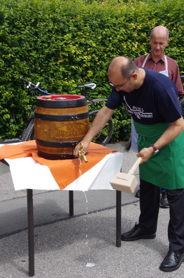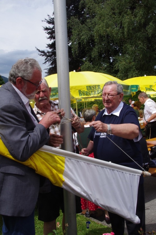 An den Kirchweihgottesdienst schloss sich das Pfarrfest rund um den Pfarrhof in der Thomastraße an. Kirchenverwaltung und Pfarrgemeinderat erwarteten die Gottesdienstbesucher mit reichlich Essen und Getränken, die Musikkapelle Piding unter der Leitung von Stephan Eder spielte fröhlich auf und es gab allerlei Attraktionen für Groß und Klein. Den Ministranten unterstand eine Bar mit alkoholfreien Cocktails, im Pfarrgarten warteten Spielgeräte für die kleinsten Pfarrfestbesucher, im Untergeschoß des Pfarrheimes hatte der Eine-Welt-Laden geöffnet und die Bücherei veranstaltete einen großen Bücherflohmarkt. Mit Kaffee und vielen selbstgebackenen Kuchen klang das Pfarrfest in den Nachmittagsstunden gemütlich aus.