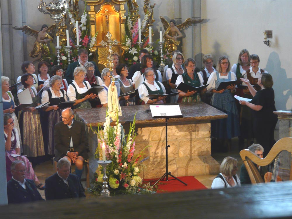 Der Kirchenchor Anger-Aufham trug zur Gestaltung des Programms mit bei. Rechts Kirchenmusikerin Martina Jakob, die mitverantwortlich für die Organisation des Mariensingens zeichnete.