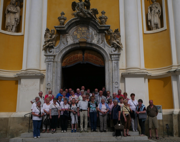Die Reisegruppe am Portal der Wallfahrtskirche Mariatrost