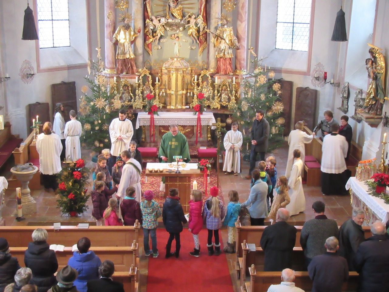 Die Kinder im Altarraum beim Friedensgruß.