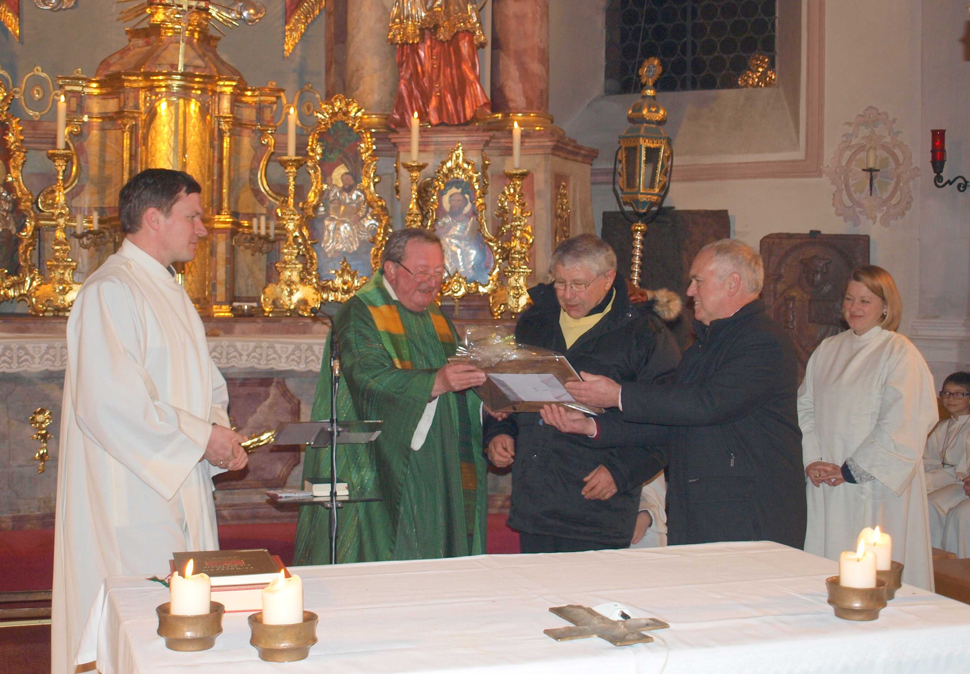 In launigen Worten verabschiedete Pfr. Josef Koller seinen Mitarbeiter, hatten die beiden doch ein sehr herzliches Verhältnis. Es war eine besondere Wertschätzung die dadurch zum Ausdruck kam dass sowohl Pastoralreferent Robert Hintereder als auch Gemeindereferentin Marianne Aicher und zahlreiche Ministranten bei dem Gottesdienst anwesend waren.