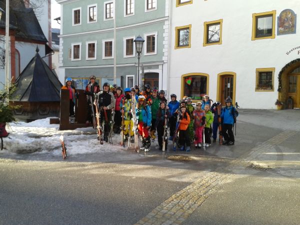 Gruppenbild in Mauterndorf beim Warten auf den Skibus