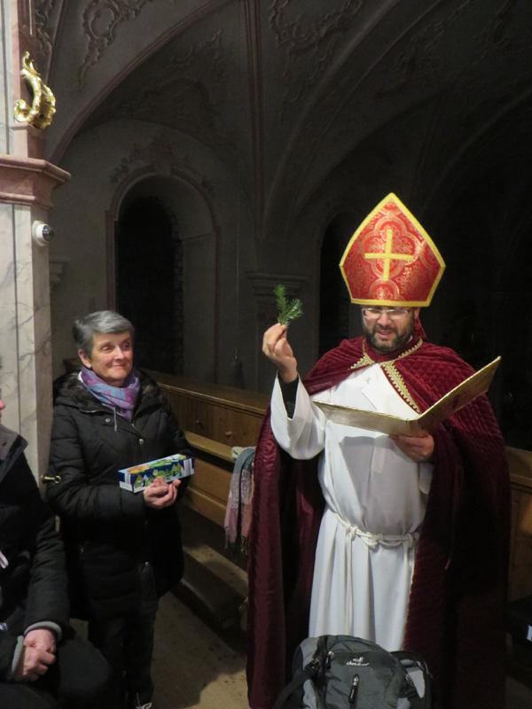 Am Vorabend zum 06.12.2018 kam ein Überraschungsgast in die Kirchenchor-Probe, Pfarrer Anghel als Hl. Nikolaus. Er sprach lobende und mahnende Worte und trug ein Gedicht vor, zu dem er Kekse, einen Tannenzweig, eine Kerze und ein Herz mitbrachte, danach verteilte er kleine Säckchen an die Sängerinnen und Sänger.