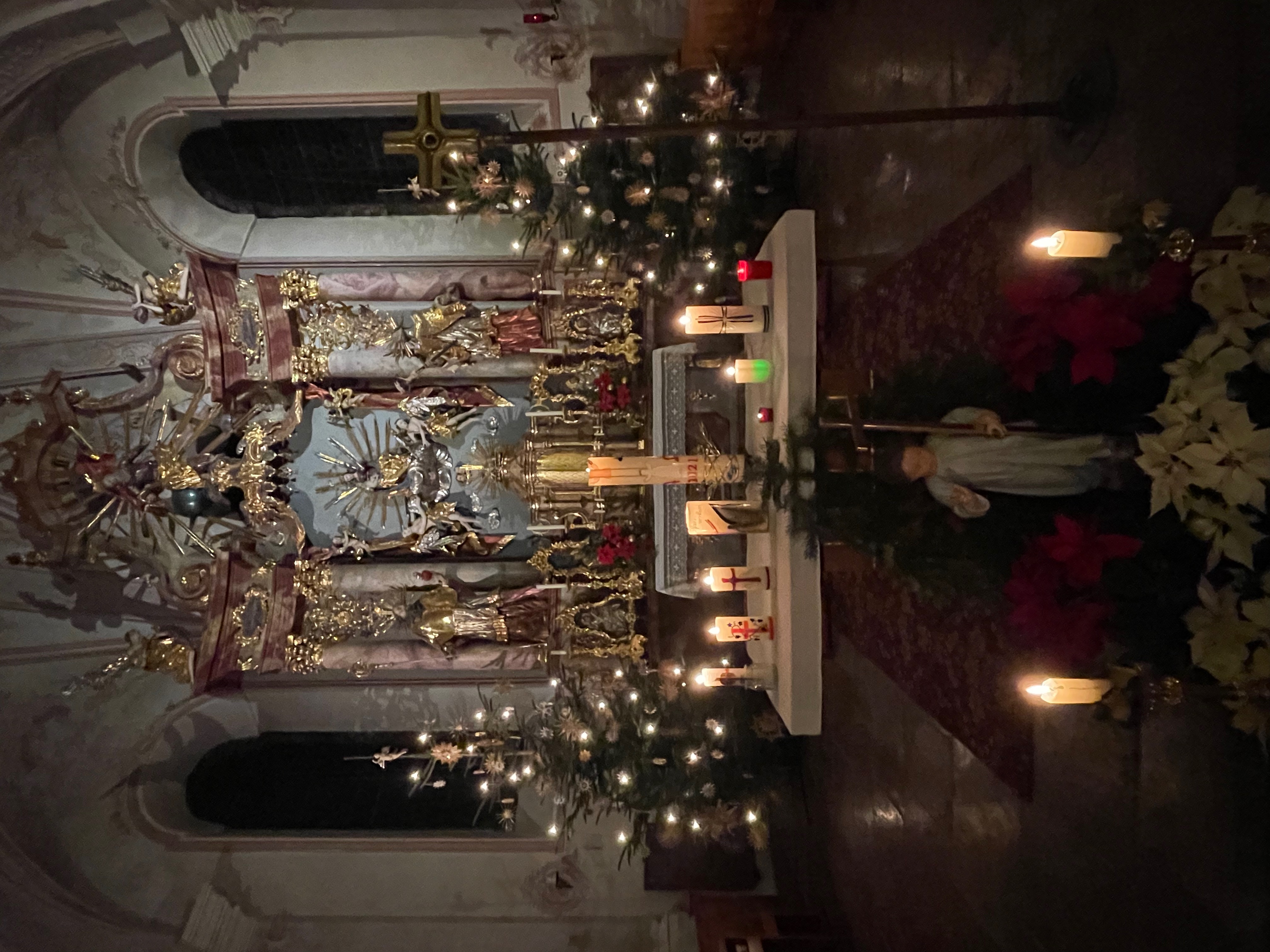 Während ruhige Instrumentalmusik erklang, wurden langsam immer mehr Kerzen im Kirchenraum entzündet, auch die großen Christbäume im Altarraum durften noch einmal brennen, so dass sich nach und nach eine lichtvolle Atmosphäre im Kirchenschiff ausbreitete.