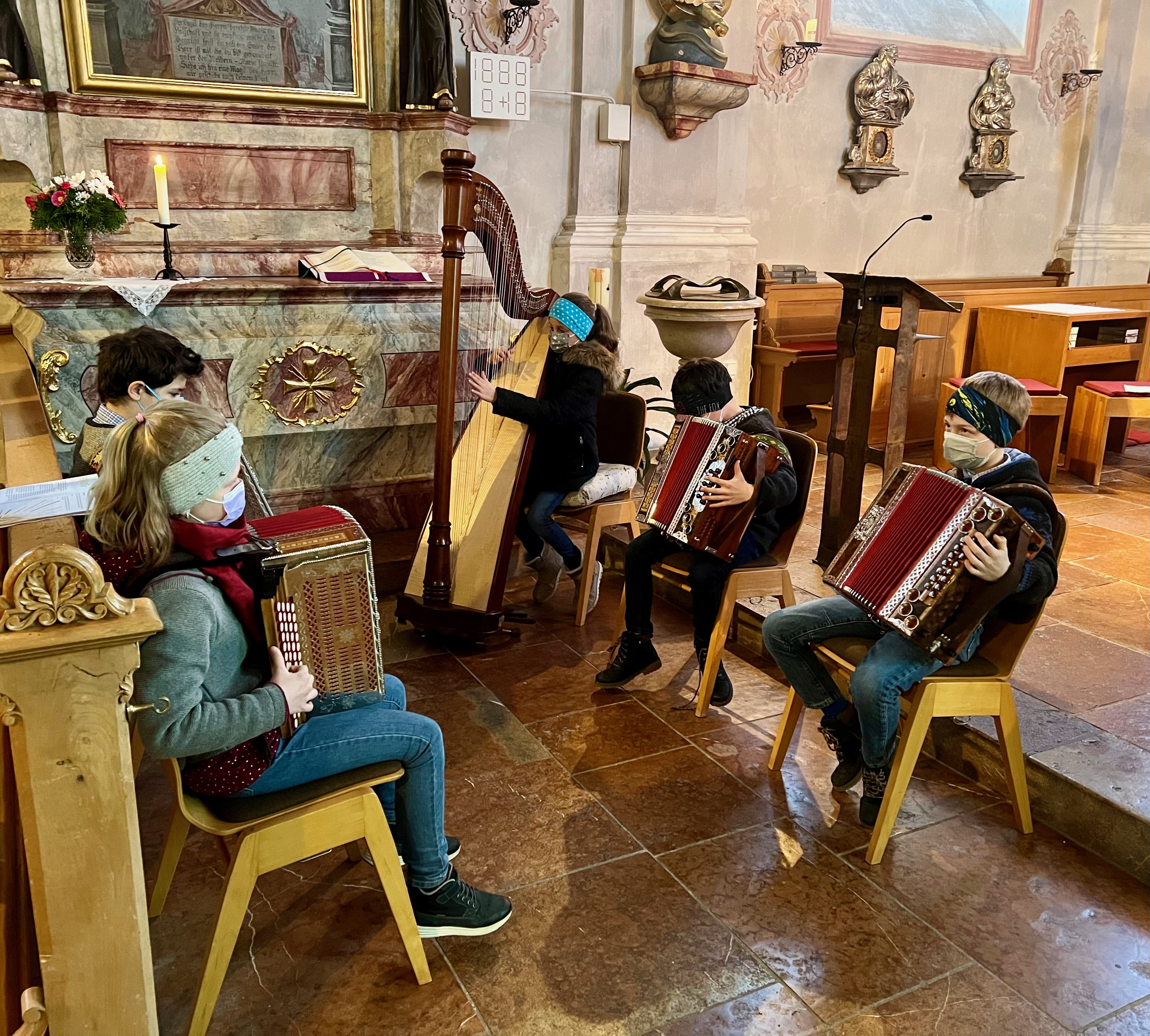 Zu Beginn und zum Schluss des Jugendkreuzweges spielte eine Gruppe ganz junger Musikanten: Magdalena Holzner, Anna Helminger, Ludwig Koch, Andreas Wagner und Simon Seeböck sorgten mit ihren frischen, einnehmenden Melodien für eine besondere Note in der Andacht.